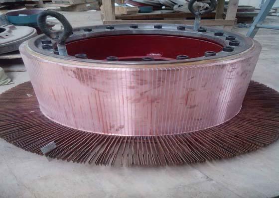 精品出口換向器產品介紹:直流電機換向器的工作原理 換向器的工作原理就是把電樞線圈中感應產生的交變電動勢,靠換向器配合電刷的換向作用,使之從電刷端引出時變?yōu)橹绷麟妱觿莸脑怼?電刷上不加直流電壓,用原動機拖動電樞使之逆時針方向恒速轉動,線圈兩邊就分別切割不同極性。
